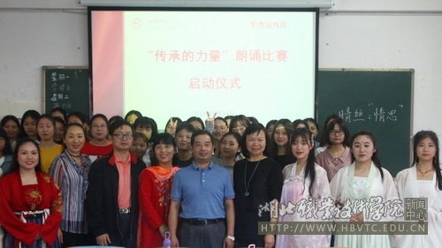 为进一步加强文化素质教育,弘扬中华优秀传统文化,增强文化自信,引导大学生向上向善、孝老爱亲、忠于祖国、忠于人民,喜迎新中国成立七十周年,学校“传承的力量”朗诵比赛5月14日在东校区乐学楼启动。大赛承办方、护理学院师生等参加了启动仪式。参加启动仪式的部分师生观摩了刘琼老师的经典诵读示范课,观看了曹琦月等同学的朗诵、舞蹈表演、诗词赏析。启动仪式后,语文教师就经典诵读与课程思政进行了教学研讨。