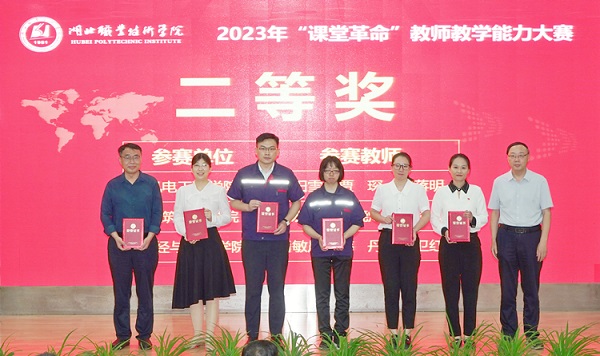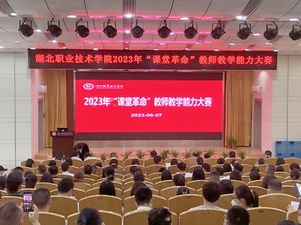 (本网讯 曾俊平)为助力学校“双高计划”和“职教升本”,6月7日,学校2023年“课堂革命”教师教学能力比赛在西校区文博馆学术报告厅举行。来自各教学单位的13个教学团队参加了本次比赛,校长郭沙、副校长胡昌杰莅临现场指导比赛,并为获奖选手颁奖,孝昌县中等职业学校、汉川市中等职业技术学校的嘉宾、各教学单位领导、骨干教师等近300人观摩了比赛。