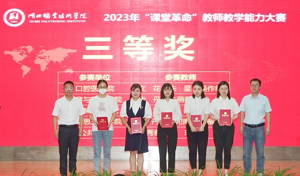本次现场比赛通过“说教学设计”和“实际课堂教学”两项进行,重点考察课程教学的内容重构、教学策略、教学实施、改革成效等。参赛团队语言表达精炼,充分利用现代技术开展线上线下混合式教学,对接国家标准和行业新技术、新规范、新要求,巧妙将课程思政融入课堂,灵活运用任务驱动、案例教学等教学方法,充分体现以学习者为中心的教学理念,集中展示了学校教师在课程设计、知识传授、技能实操等方面的专业水平和职业素养。比赛评分体现主体多元、结构多样,分为赛前教学资料评分、现场评委评分和现场观摩人员评分。经过选手们的精彩展示,护理学院参赛团队荣获一等奖,机电工程学院、建筑工程学院、财经与旅游学院3个参赛团队荣获二等奖,口腔医学院、教育与艺术学院、信息工程学院、马克思主义学院、公共课部5个参赛团队荣获三等奖。