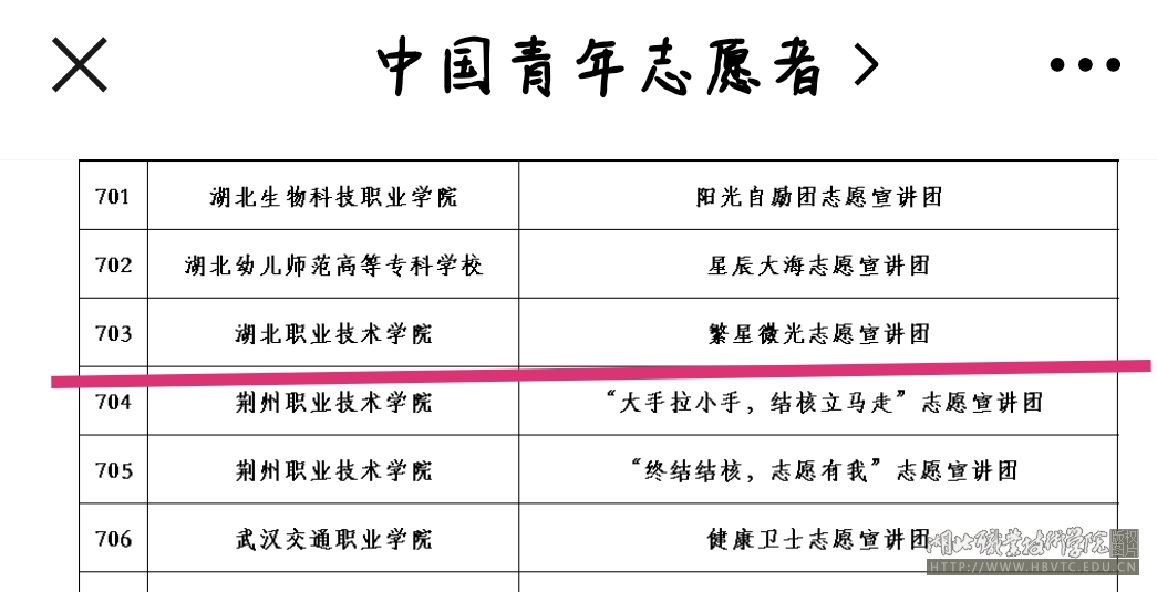 (本网讯 白洁)近日,团中央青年志愿者行动指导中心公布2023年全国大学生志愿宣讲团入选团队名单,本次活动共有来自全国近700所高校的4850支团队提交申报材料,我校共推荐申报了6支学生团队,其中3支入围。