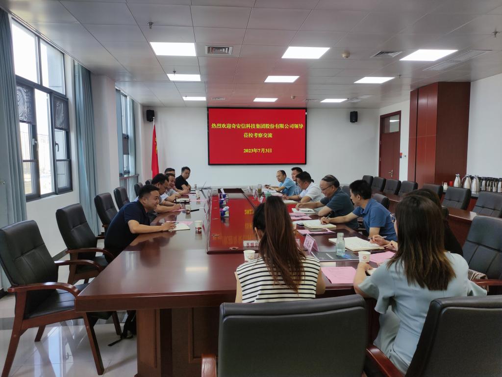 (本网讯 通讯员:王光耀)7月3日下午,奇安信科技集团股份有限公司集团副总裁魏雨露等领导一行4人莅临我校考察交流。孝感市政府副秘书长林成儒,学校校长郭沙、副校长胡昌杰出席,学校对外合作交流处、信息工程学院、信息化中心、孝感市网络安全协会相关人员等参加了交流活动。