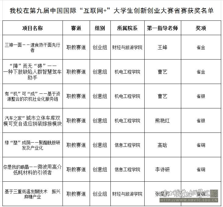 本次大赛由湖北省教育厅主办,以“我敢闯、我会创”为主题。据悉,全省高校共有97524个项目参赛,参赛学生430623人,其中407个项目入围省级复赛现场赛。我校共有4个项目入围省级复赛现场赛,其中《三神一面-速食热干面先行者》《“障”而无“碍”—一种下肢缺陷人群智慧驾车助手》2个项目获职教赛道金奖,并成功入围国赛。