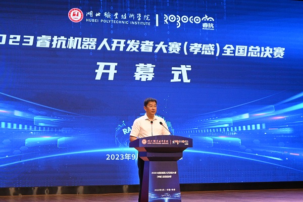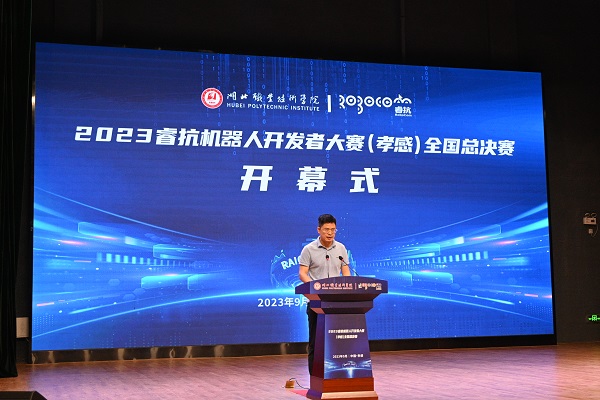 (本网讯 陈灏 龚洪浪 黄文军 黄洪波 曹艺 孔方)9月15日上午,2023睿抗机器人开发者大赛(RAICOM)(孝感)全国总决赛开幕式在我校南校区崇德礼堂举行。睿抗机器人开发者大赛组委会秘书长彭保林、我校校长郭沙、大赛专家裁判、新闻媒体代表、湖北兴华教投信息技术有限公司、深圳市元创兴科技有限公司、深圳史河机器人科技有限公司等企业负责人出席开幕式。来自祖国各地的本科院校、高职院校共131支代表队师生参加开幕式。开幕式由副校长胡昌杰主持。