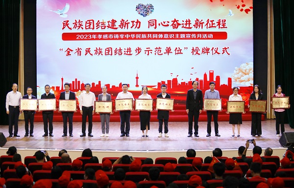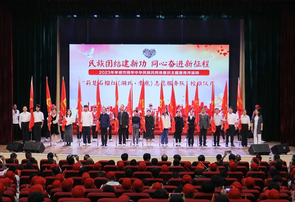 此次活动对孝感市11家“全省民族团结进步示范单位”授牌,表彰了“国家通用语言文字学习标兵”决赛先进集体和先进个人,举行了“荆楚石榴红(湖北·孝感)志愿服务队”授旗仪式等。