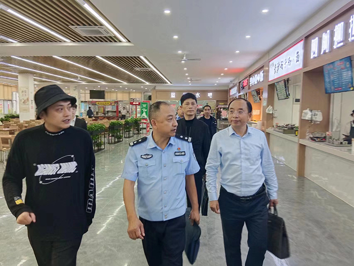 (本网讯 高福平 )为认真落实《2023年度全省平安校园建设工作要点》,深入开展平安校园建设风险隐患排查整治专项行动,9月26日,省公安厅第十六督导检查组胡江华一行检查指导学校平安校园建设风险隐患排查整治工作。孝感市公安局、孝南公安分局及新华派出所以及学校相关职能部门负责人参加并陪同进行检查,学校党委委员、副校长梅重主持汇报会。