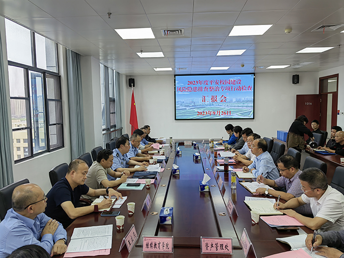 党委保卫部负责人高想清从制度机制建设、维护安全稳定、人防物防技防建设、防范与处置效果、平安校园建设特色与荣誉等五个方面汇报了学校开展平安校园建设风险隐患排查整治专项情况。