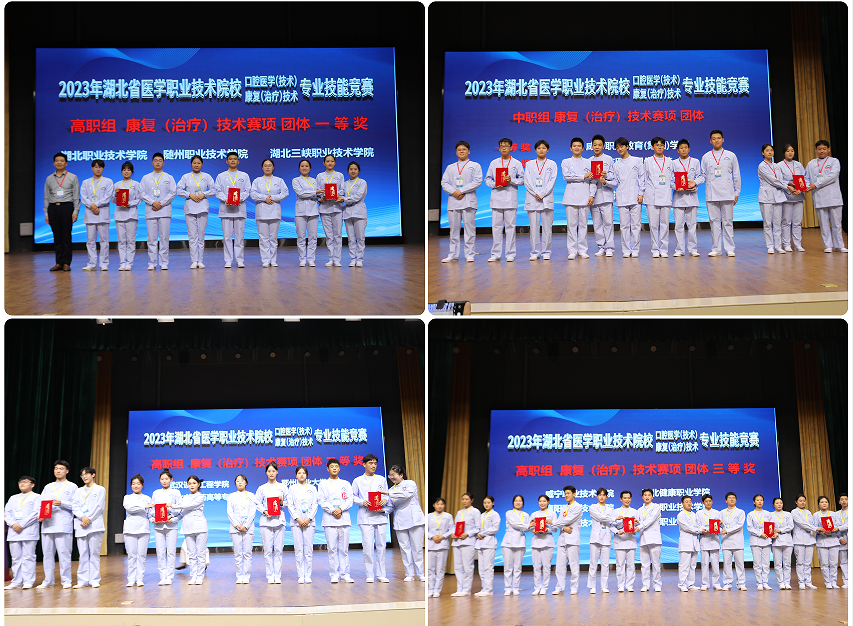 (本网讯 陈灏 龚洪浪 杨毅 许智 谢宏新 沈平 黄文军 龚恒)金秋菊黄,杏林赛场点兵;楚天澴水,友谊合作赓续。47支代表队参赛选手发扬执着专注、精益求精、一丝不苟、追求卓越的工匠精神, 践行仁心仁术、勤勉敬业、勇于创新的职业精神,在竞赛中拼技能、显身手、展风采,充分发挥聪明才智,沉着、认真对待每项赛程,坚持“交流、团结、进步”的宗旨,以精湛的技能、良好的素质、向上的风貌,赛出了风格,赛出了水平。10月28日傍晚,2023年湖北省医学职业技术院校口腔医学(技术)、康复(治疗)技术专业技能竞赛颁奖典礼在我校南校区崇德礼堂举行。