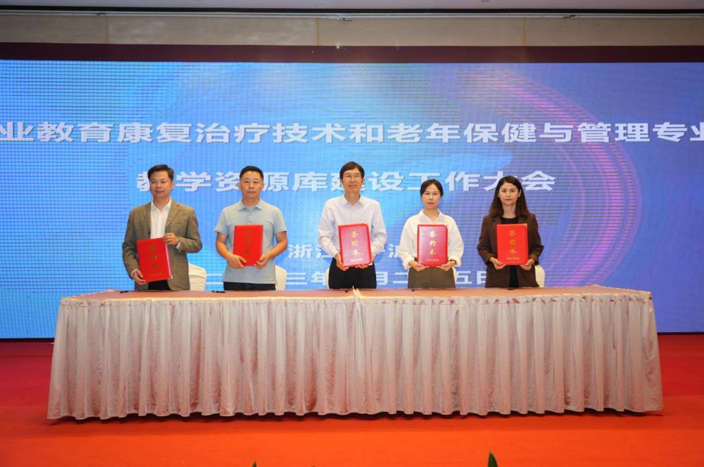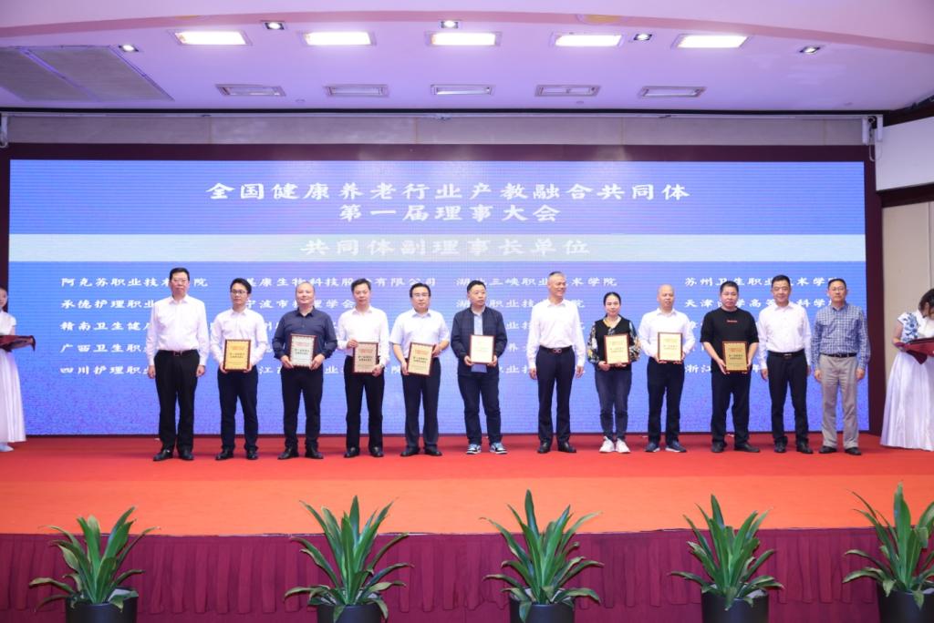 会议现场审议通过了《全国健康养老行业产教融合共同体章程》,选举产生了理事长、副理事长单位,并举行了理事长、副理事长单位授牌仪式;审议通过了职业教育康复治疗技术专业教学资源库共建共享联盟《章程》、资源库共建共享联盟理事长、副理事长和理事单位名单,并举行了项目签约仪式。