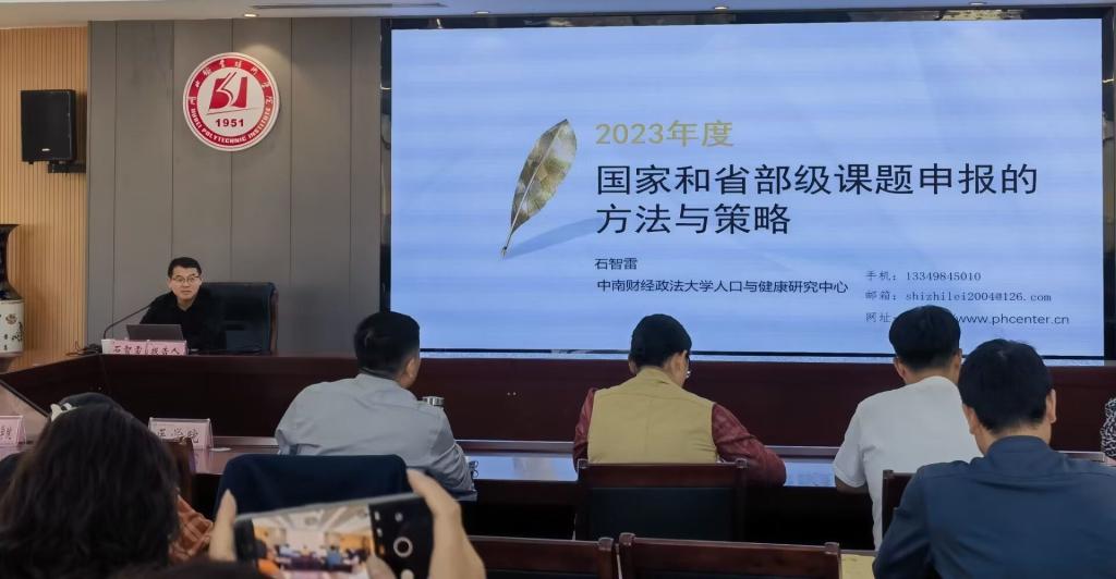 (本网讯 龙涛)11月1日,学校在南校区图新大楼601会议室举行学术交流活动。会议邀请教育部长江学者、中南财经政法大学社会科学研究院院长石智雷教授,以“省部级以上基金课题的选题、申报技巧与研究方法”为主题开展学术讲座。2023年新增立项课题负责人、科研机构负责人、科研领军人物、科研英才,以及部分科研工作者、科研爱好者参加了会议。会议由党委委员、副校长胡昌杰主持。