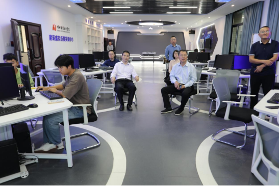 调研会后,刘义一行到学校冰点传媒电商直播实践基地、建筑虚拟仿真实训中心等地进行了实地考察。