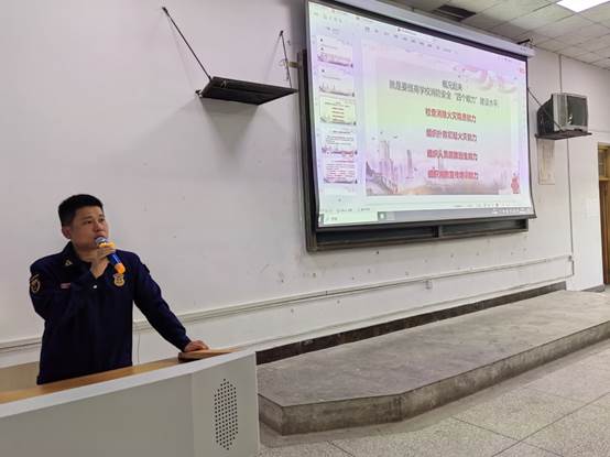 此次消防教育培训演练分为消防安全法规、基本知识教育培训和消防灭火实战技能演练两部分。重点从消防四个能力、报警119、消防器材的使用方法,以及寝室用电规范和火灾自救措施等方面进行讲解,要求师生员工在重视个人人身财产安全的同时,要时时重视消防安全,学消防、防火灾,做消防安全的责任人。