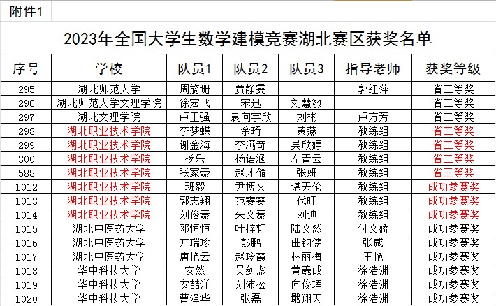 (本网讯 张守平)2023年全国大学生数学建模竞赛结果日前揭晓,我校选派21名学生组成7个代表队参加了竞赛,其中3个代表队获湖北省二等奖、1个代表队获湖北省三等奖、3个代表队获成功参赛奖。
