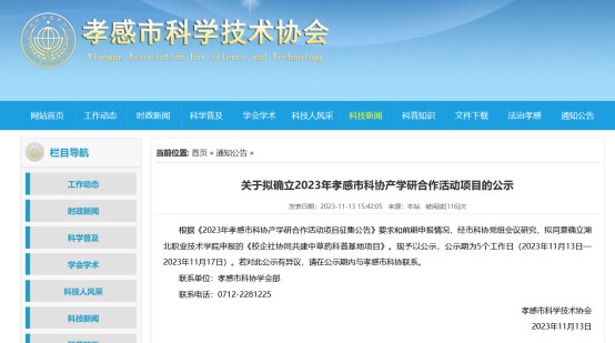 (本网讯 王雪芳)根据《2023年孝感市科协产学研合作活动项目征集公告》要求,医学院彭颐老师主持申报了“校企社协同共建中草药科普基地”项目,于近日被孝感市科协立项,这是我校科普工作和弘扬传统中药文化取得的又一项新突破。