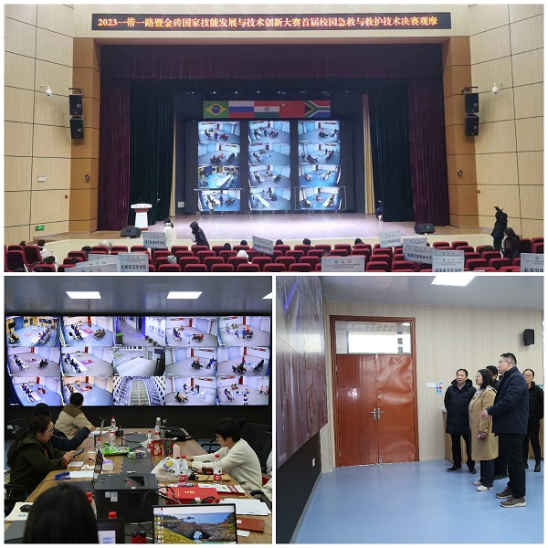 (湖北职院南校区崇德礼堂,2023一带一路暨金砖国家技能发展与技术创新大赛-首届校园急救与救护技术决赛线上观摩现场)