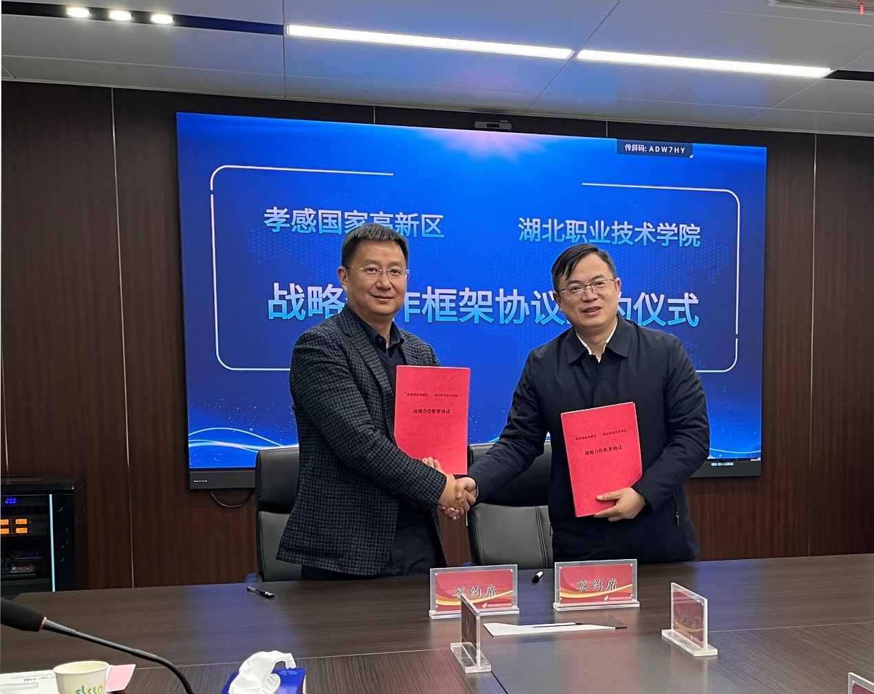 (本网讯 王雪芳、黄宏丽)12月15日,为促进产教融合、科教融汇,深入推进孝感市域产教联合体建设,学校校长郭沙、副校长白梦清一行到孝感高新区调研考察,并与孝感高新区签订校地战略合作框架协议。孝感市委常委、孝感高新区党工委书记贺卫东,孝感高新区管委会主任舒俊陪同调研并参加座谈会。