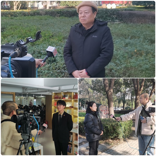 孝感市直老年书画研究会肖圣清作精彩书法讲座。孝感市直老年书画研究会会长祁建勋在接受孝感电视台记者采访时说,在毛泽东同志诞辰130周年之际,恰逢孝感市建市30周年,我们老同志走进湖北职院,与师生交流书画艺术,纪念伟人毛泽东同志,很有意义。湖北职院文化氛围很浓,立德树人成效显著,文化品牌效应彰显。程颖同学说,在湖北职院多彩文化空间中,我们接受洗礼,赓续红色基因,争做时代新人。