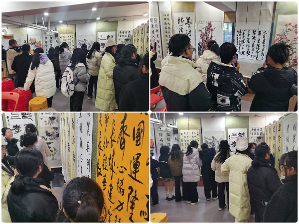 (本网讯 陈灏 余丽 梁遗鹏)12月23日,纪念毛泽东同志诞辰130周年书画展和书法交流活动在东区“石榴红·孝廉谷”、西区大学生活动中心举行。孝感市直老年书画研究会老艺术家们与湖北职院师生济济一堂,挥毫泼墨,品味书法,切磋交流,寓教于艺,以丰富多彩的文化活动,纪念毛泽东同志诞辰130周年。