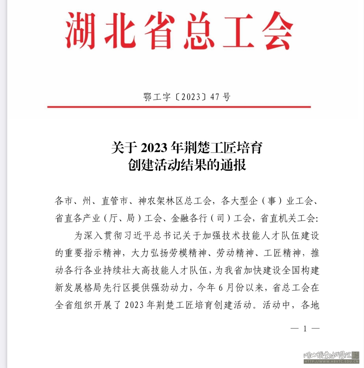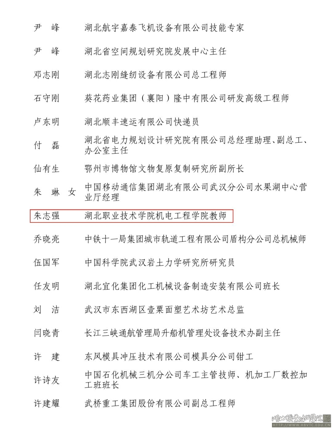 (本网讯 余斌清 朱晓艳)近日,2023年荆楚工匠培育创建活动结果揭晓,我校朱志强老师获评2023年“荆楚工匠”。