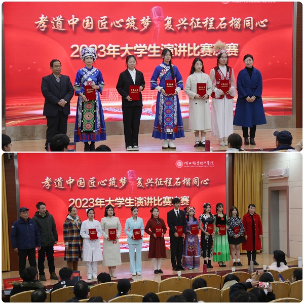 (本网讯 陈灏 熊元焕 黄璐 唐熙隆)文化盛宴,精神大餐;形神兼备,美美与共;和衷共济,复兴征程。12月27日下午,2023年“孝道中国匠心筑梦·复兴征程石榴同心”演讲比赛决赛在西校区文博馆学术报告厅成功举行。2023级各族学子聚焦主题,结合民族特色、自身实际和职业生涯发展、所在教学院和专业群发展等,讲述精彩故事,生动展示了对中华孝文化、工匠精神、“强校有我”、民族团结的理解、内化和践行,见人见事,有形有感,见情见理,共鸣共情;表达了各族师生“强校有我”“创高升本”“创新图强”的共同心声,增进了各族学子“同呼吸、共命运,守望相助、亲如一家”的文化认同。学校党委委员、副校长梅重,职能部门负责人、教学院分管负责人,道德模范、演讲专家、思政课教师、辅导员等出席并为获奖选手颁奖。本次比赛在江南官方注册_江南(中国)官方视频号同步直播,当天下午学校师生和各界网友线上观看了决赛。