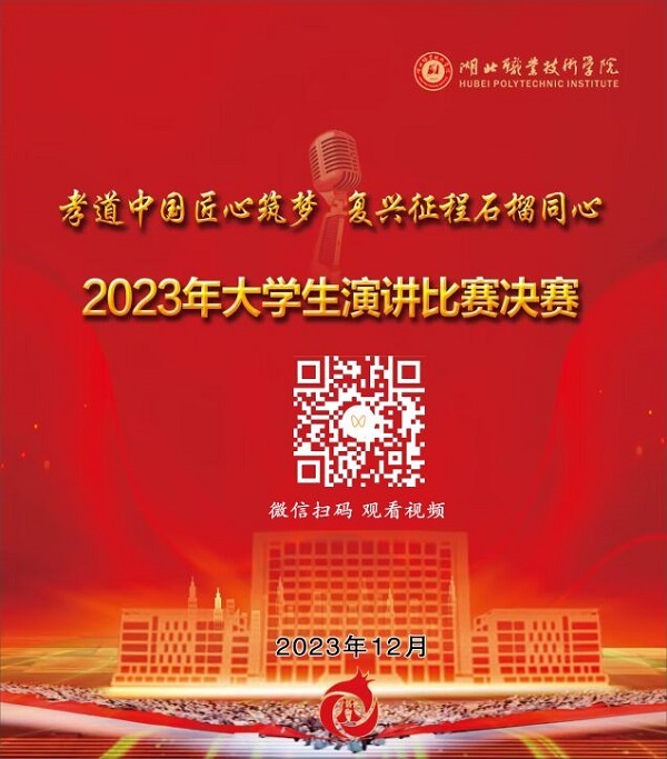 “孝道中国匠心筑梦·复兴征程石榴同心”演讲比赛是我校第24届科技文化体育艺术节的重要组成部分。大赛以习近平新时代中国特色社会主义思想为指导,深入学习贯彻习近平文化思想和习近平总书记关于加强和改进民族工作的重要思想,引导大学生赓续红色基因,坚定文化自信,自觉成为中华优秀传统文化的传承者、践行者和传播者,大力弘扬劳模精神、劳动精神、工匠精神,厚植家国情怀,技能成才报国,铸牢中华民族共同体意识,共同促进民族团结进步,在孝感建设中华孝文化名城、打造武汉都市圈重要节点城市、湖北建设全国构建新发展格局先行区的进程中贡献青春、智慧和力量。