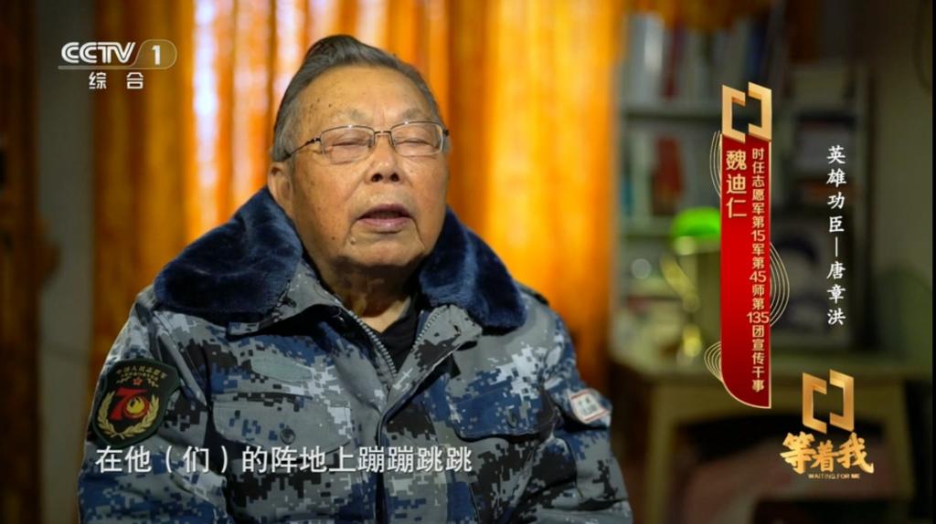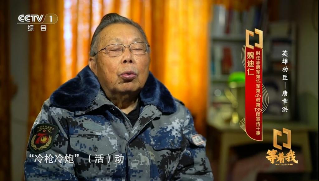 (本网讯 陈灏 余丽)1月15日晚,央视综合频道(CCTV-1)《等着我》栏目播出《英雄功臣——唐章洪》。抗美援朝战争上甘岭战役亲历者、第三届全国道德模范提名奖获得者、第三届湖北省道德模范、我校魏迪仁老师讲述唐章洪英雄故事,彰显技能价值,弘扬工匠精神。这是魏迪仁老师自2023年9月以来,第四次荣登央视综合频道(CCTV-1),以“大思政课”的形式,讲述伟大的抗美援朝精神,在全国引起强烈反响。