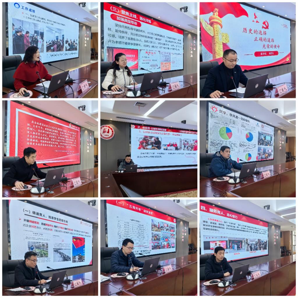 郭沙指出,各单位的发言准备充分、思考全面、思路清晰,既有分享交流,又有具体谋划。他强调,学生工作要始终紧持以生为本,进一步强化实践导向,由管理向服务转变、由德育向五育转变、由线下向“线下+线上”转变,要进一步抓实学生生涯阶段教育内容和工作举措,将孝文化教育常态化融入到学生教育管理服务中,努力打造湖职特色学生工作品牌,促进学生全面发展,推动学校学生工作高质量发展。