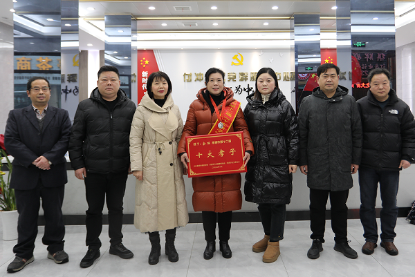 (本网讯 陈灏 )2月1日,第十二届孝感市“十大孝子”评选组委会将古色古香的孝感市“十大孝子”的木质牌匾,送至余丽老师父母所在的孝南区付冲社区党员群众服务中心。腰鼓队也来到付冲社区党员群众服务中心,用喜庆欢乐的锣鼓声送来庆贺与祝福。市委宣传部、市卫健委相关负责人,校党委宣传部负责人、付冲社区党员群众服务中心负责人、市电视台记者等出席活动。
