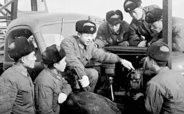 (雷锋同志平时不忘进行钻研业务,自己动手改制汽车节油装置)