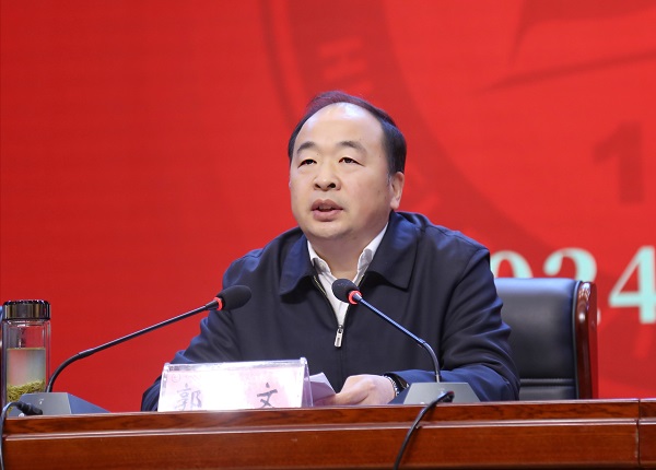 郭国文指出,2024年,是中华人民共和国成立75周年,是落实“十四五”规划的关键之年,是国家新一轮“双高计划”的开启之年。学校工作总的指导思想是:坚持以习近平新时代中国特色社会主义思想为指导,认真贯彻落实党的二十大精神和党的教育方针,以高质量发展为主题,以立德树人为根本,以创高升本为引领,以改革创新为动力,以强校有我为抓手,抢抓机遇、乘势快上,奋力推进学校发展再上新台阶、谱写新篇章。