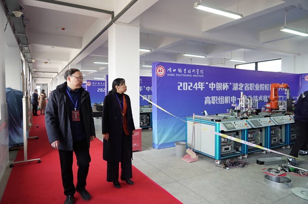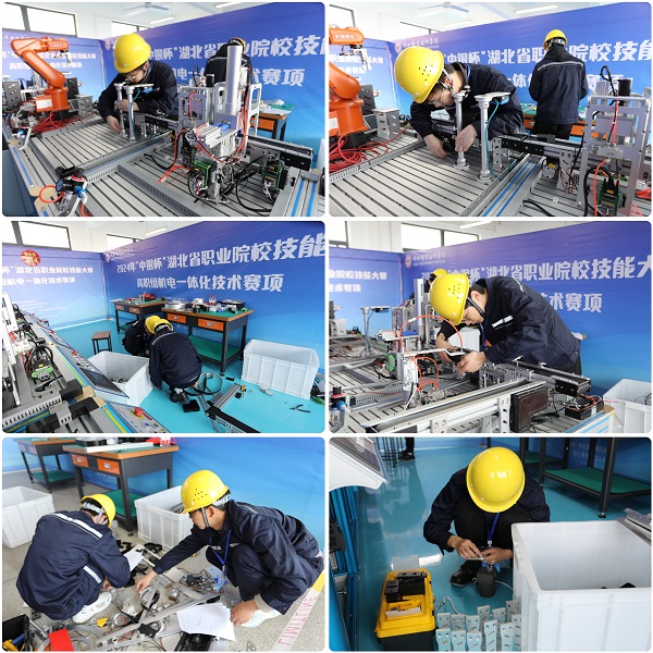 (本网讯 陈灏 田勤 胡明亮)3月9日7:00,2024年“中银杯”湖北省职业院校技能大赛(高职组)机电一体化技术赛项在我校南校区开物楼开赛。崇德礼堂开设线上观摩平台。