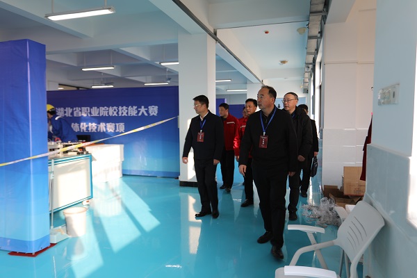 (本网讯 陈灏)3月11日下午,校党委书记郭国文、校长郭沙、副校长胡昌杰一行,深入2024年“中银杯”湖北省职业院校技能大赛(高职组)机电一体化技术赛项比赛现场调研。教务处、机电工程学院相关同志陪同。