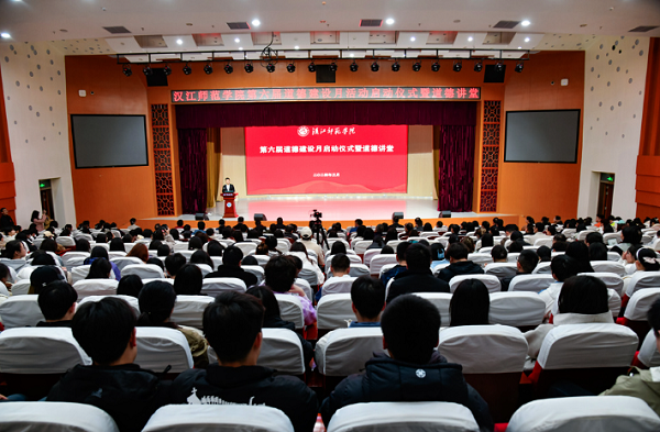 (本网讯 陈灏 朱晓艳)3月15日下午,荆楚石榴红宣讲团成员、全国道德模范谭之平走进汉江师范学院,参加该校第六届道德建设月启动仪式暨道德讲堂活动,并作报告,在该校师生中引起强烈反响。汉江师范学院党委书记付永昌出席并讲话,党委常委、副校长吴红斌主持启动仪式暨道德讲堂活动。