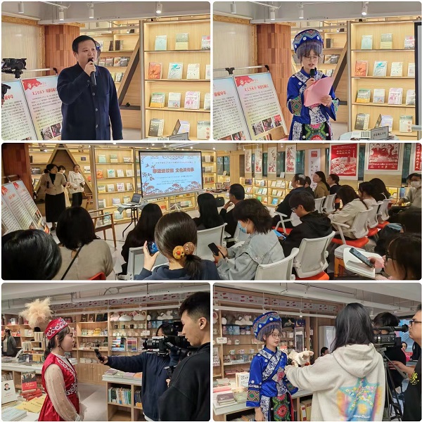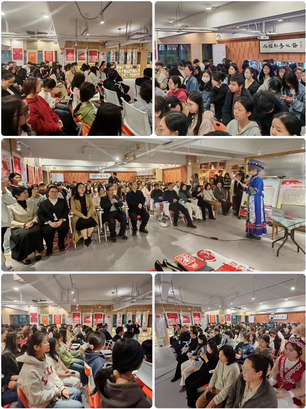 “非遗节”启动式上,孝感市群众艺术馆馆长徐川川、校党委宣传部部长田寿永分别致辞。孝感市非遗保护中心主任李玮、省级非遗代表性传承人徐惠斌、孝南区文化馆馆长池泉、副馆长舒翠红、区级非遗代表性传承人钟鸣、湖北省三八红旗手余丽老师等出席“非遗节”启动式。荆楚网、孝感电视台、孝南融媒体等媒体代表、自媒体代表,各族师生代表,石榴红·孝廉谷基地成员、融媒体中心成员、孝艺剧社会员,各族群众等线上线下参加活动。
