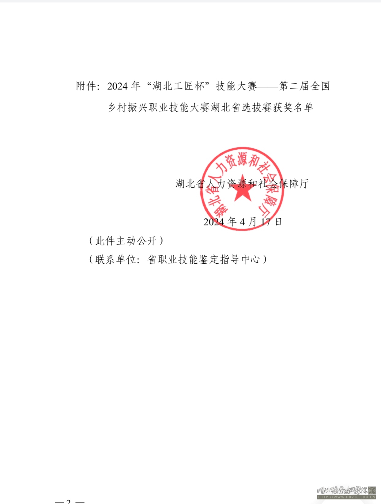 (本网讯 余斌清)根据省人力资源和社会保障厅《关于组织举办2024年“湖北工匠杯”技能大赛--第二届全国乡村振兴职业技能大赛湖北省选拔赛的通知》(鄂人社函[2024] 35号)文件精神,学校工会办公室广泛宣传,精心组织,我校财经与旅游学院、教育与艺术学院、建筑工程学院、护理学院共14名师生参加了湖北省选拔赛。
