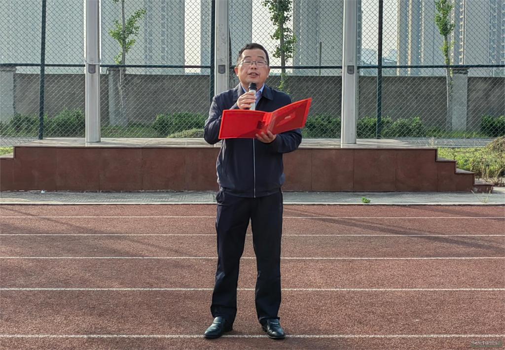 迎着朝阳,校国旗护卫队的同学们迈着坚定步伐,护卫着鲜艳的五星红旗入场。在庄严的国歌声中,五星红旗冉冉升起,全体师生庄严肃立,满怀深情地向国旗行注目礼,齐唱国歌。新团员代表马浩男带领新老团员面对鲜艳的团旗,举起右手庄严宣誓。