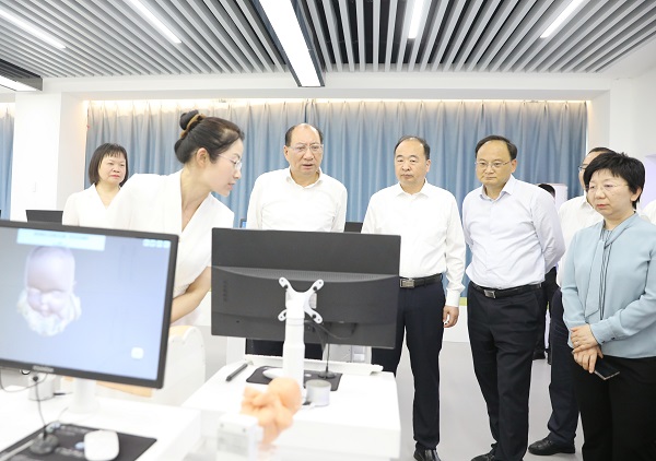 胡玖明来到护理虚拟仿真实训基地、康复实训中心,详细了解护理专业群建设、特色课程设置、教学模式创新等情况,指出要进一步创新办学理念,全面提升学生临床思维能力和综合实践能力,打造高水平专业群,为孝感定向培养更多高素质护理人才。