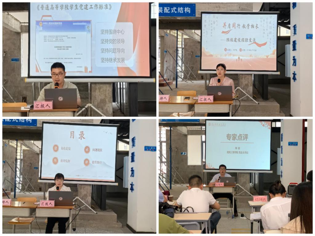 “活动点评”环节,点评嘉宾、建筑工程学院党总支书记程思表示,党建育人是高校基层党建工作的核心,是高校育人工作的重要内容。学工队伍要尝试有温度的思政教育,在党建带团建、校社共同缔造、校企党支部联合共建上发力,要距离学生更近、服务师生更多、示范作用更强,为学校事业高质量发展贡献力量。