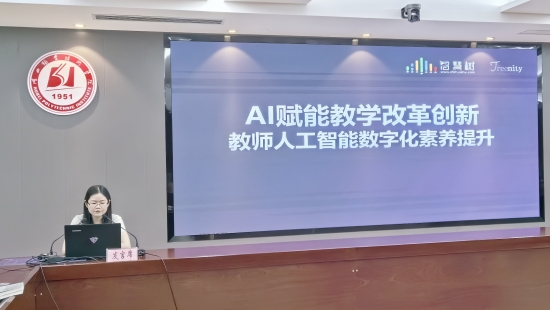 活动第二阶段,智慧树网AI教育负责人叶艳群,从AI如何赋能教学改革创新和教师人工智能数字化素养提升进行了专题讲座。叶艳群强调,AI赋能教学,在数字资源、知识图谱、备课中心、AI阅读、AI助手等方面都可以辅助教师教与学生学;同时,在其它方面,如招生就业、图书馆等方面,可以作为学校智能助手,助力智慧校园建设。通过AI去发现、传播和汇聚知识,成为改变教育的力量。