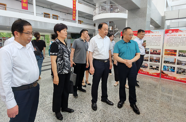 赵军章一行参观了我校铸牢中华民族共同体意识教育、民族团结进步创建工作、道德群星、石榴红·孝廉谷文化基地成果等展览,以及护理虚拟仿真实训基地等,与各族师生代表座谈。赵军章对我校高质量发展以及铸牢中华民族共同体意识教育、民族团结进步创建等工作予以高度评价。