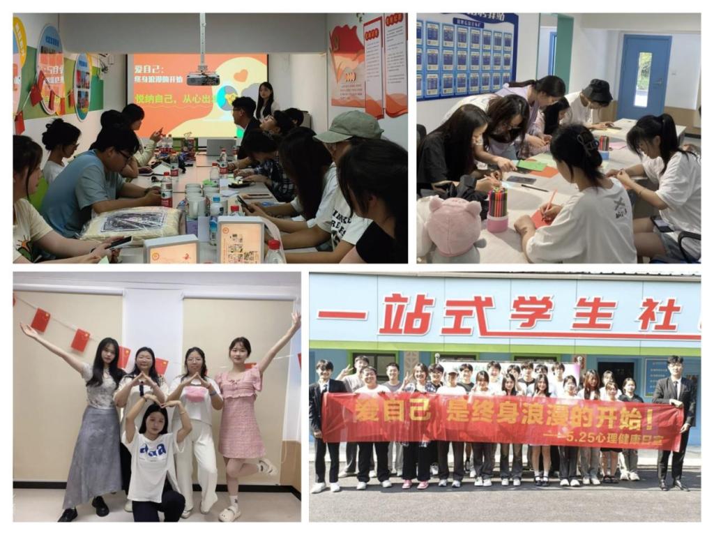 在5•25心理健康专题活动期间,各学院结合自身特色和学生的心理特点与需求,在各一站式学生社区开展了形式多样的心理健康教育活动,共同引导全体学生自爱互爱、自助互助,争做身心健康的第一责任人。