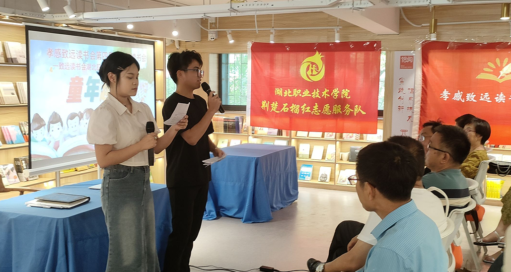 (本网讯 陈灏 余丽)童真与真诚相通,匠心和文心相连。全国大学生心理健康日相遇“六一”国际儿童节,日前,以“童年趣事”为主题的读书会暨文学鉴赏会在我校石榴红·孝廉谷文化基地举行。孝感致远读书交流会的“文学大咖”与我校石榴红·孝廉谷文化基地骨干、石榴红志愿服务队的各族文学青年济济一堂,分享原创作品,回首心路历程,感悟职业成长,助推各族融合,畅想技能报国,为“强校有我”“创高升本”“中国式现代化湖北实践孝感篇章”汇聚奋进力量。活动由潘思辰、黄观朋同学主持。
