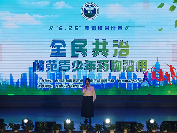 (本网讯 汪胜祥 高福平 冷玖玲)为深入贯彻落实习近平总书记关于青年工作的重要思想和禁毒工作重要指示精神,持续深化青少年毒品预防教育,进一步提高大学生防毒拒毒意识,在第37次国际禁毒日到来之际,6月2日,学校联合孝感市禁毒委员会、孝南区禁毒委员会、孝南公安分局举办 以“全民共治 防范青少年药物滥用”为主题的禁毒知识演讲比赛。孝感市禁毒委副主任、市委政法委副书记向文轩,孝感市禁毒办主任、市公安局副局长张劲松,孝感市公安局党委委员、孝南区公安分局局长刘永新,政委罗剑文,孝南区委政法委常务副书记艾俊刚,学校党委委员、副校长梅重等出席活动。