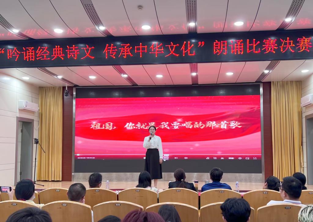 (本网讯 聂静)为激发当代大学生对中华优秀文化的热爱之情,提升学生中华文化底蕴,增强文化自信自强。6月5日下午,学校“吟诵经典诗文 传承中华文化”朗诵比赛决赛暨第六届中华经典诵写讲大赛选拔赛在西校区文博馆学术报告厅举行。本次活动由教务处、公共课部共同组织,学校党委宣传部、教务处、学生工作部、各教学单位相关负责人及师生代表共300余人现场观摩了比赛。