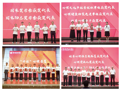 党委学工部部长魏俊桃宣读了表彰文件。优秀心理专干教育与艺术学院教师余翠琴,“十佳”心理委员财经与旅游学院学生吴家航、励志奖学金获得者护理学院学生胡康丽和国家奖学金获得者建筑工程学院学生蔡春杨作了发言。