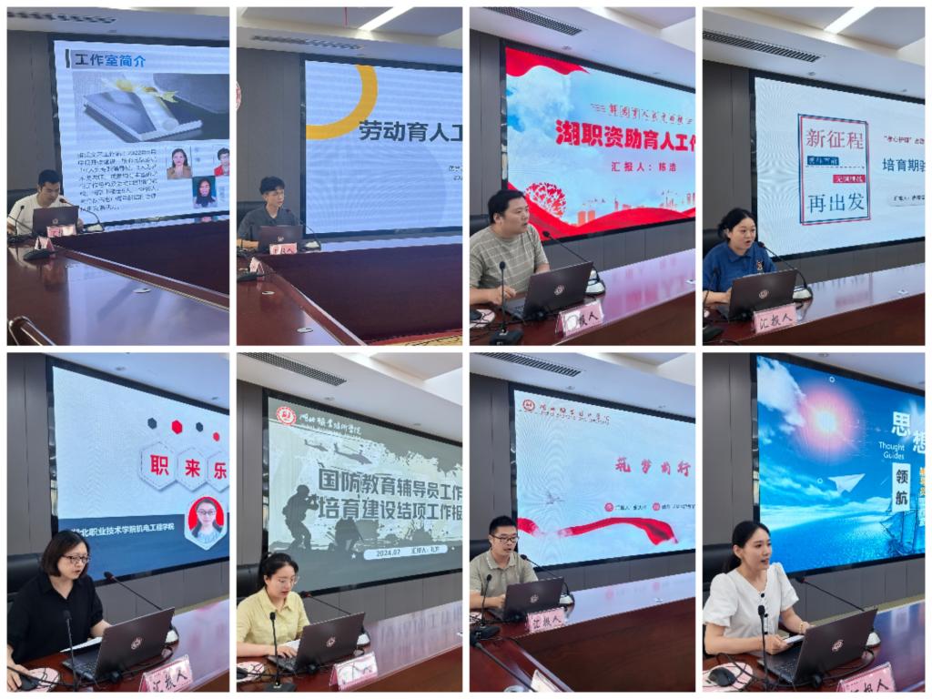 学校首批培育建设的雅乐文艺辅导员工作站、劳动育人辅导员工作室、资助育人辅导员工作室、“孝心护理”志愿服务实践育人辅导员工作室、职来乐业辅导员工作室、国防教育辅导员工作室、党建育人辅导员工作室、思想领航辅导员工作室的主持人分别围绕工作室建设内容、工作成效、团队建设、经验启示等方面进行了汇报,充分展示了辅导员工作室在立德树人和服务学生成长成才等方面的育人成效,为学生创新发展提供了新模式、新思路、新方法。