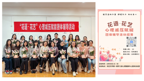(本网讯 杨惠)10月30日下午,2024年“花语·花艺”心理减压赋能团体辅导活动在东校区乐学楼心理团体活动室顺利举行,全校20余名教职工代表参与。