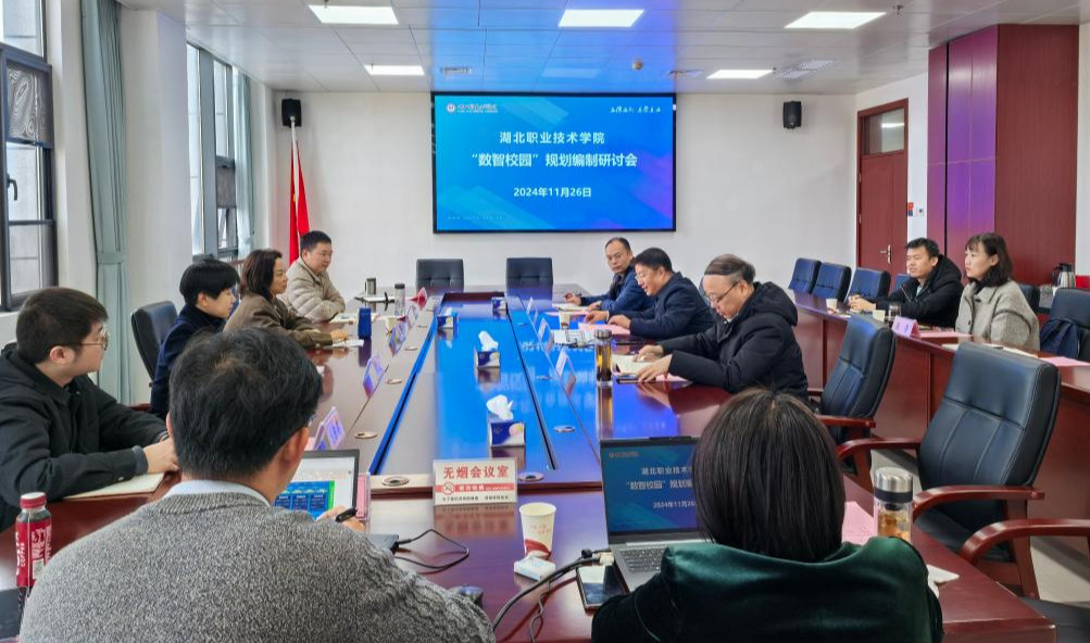 (本网讯 胡世辉)11月26日,学校在图新楼1016会议室组织召开“数智校园”规划编制研讨会。校长郭沙出席会议,会议由副校长胡昌杰主持。中国移动孝感分公司总经理许莉、副总经理李俊杰、北京易思捷信息技术有限公司华中区总经理洪文婷、中移系统集成有限公司项目经理胡巍瀚以及信息化中心、孝感移动相关工作人员参加会议。