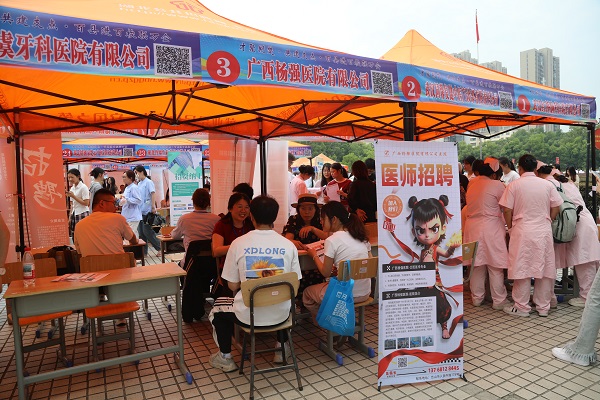 广西杨强医院陈章莲校友、宁波慈中口腔朱静峰校友、牙康安口腔孙雅琪校友等带队参加招聘会,与我校多名毕业生签订就业协议。
