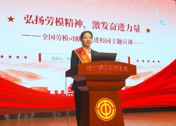 感悟劳模精神,开启奋进征程。全国劳动模范、全国技术能手司献凤用质朴的语言阐述了平凡岗位中的伟大,展示了技能成才、技能报国的感人事迹,让在场师生近距离感受到劳模精神的强大感召力。