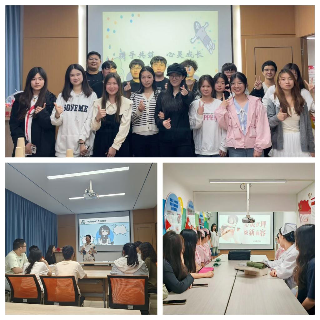 护理学院依托医学美容专业优势,举办“心灵护理,焕新面容”心理健康主题特色活动,创新构建“技术赋能+心理疗愈”双轨模式,助力青年学子塑造健康审美认知。口腔医学院“齿心相映,微笑同行”活动,以“微笑打卡”为核心,引导学生从拘谨羞涩,到逐渐绽放明艳笑容,激发积极情感。心理服务全国精品项目--解忧便利店开设的“心情放映机”“烦恼便利贴”“助眠舒心丸”等服务,实现朋辈互助、纾解忧愁、提供支持,培育“悦自己、悦他人、悦学习、悦生活”的“四悦学生”。